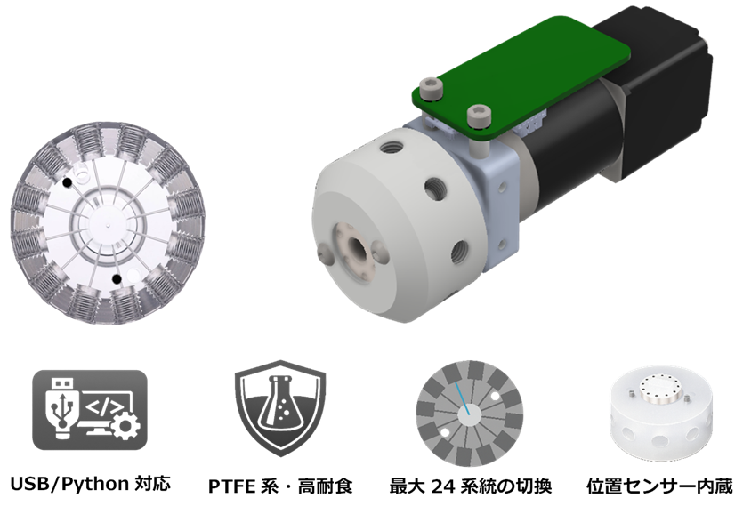 RVMバルブの製品概要|ラボ自動化・AI連携対応 多方切換マイクロ流体ロータリーバルブ